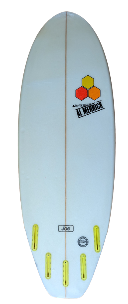 La Channel Islands "Joe" en 3 mots : intuitive, joueuse et accessible ! Le design combine un léger concave simple sur le premier tiers, suivi d’un concave en V plus marqué qui s’étend sur toute la longueur. La Joe s’exprime aussi bien sur le rail que sur le tail. Les rails épais assurent un volume généreux malgré un outline compact. Résultat : davantage de vagues attrapées et plus de sections exploitées. Pour le surfeur moyen, le plaisir reste la priorité absolue. On conseillera de la surfer en quad pour plus de speed et une meilleure accroche